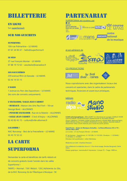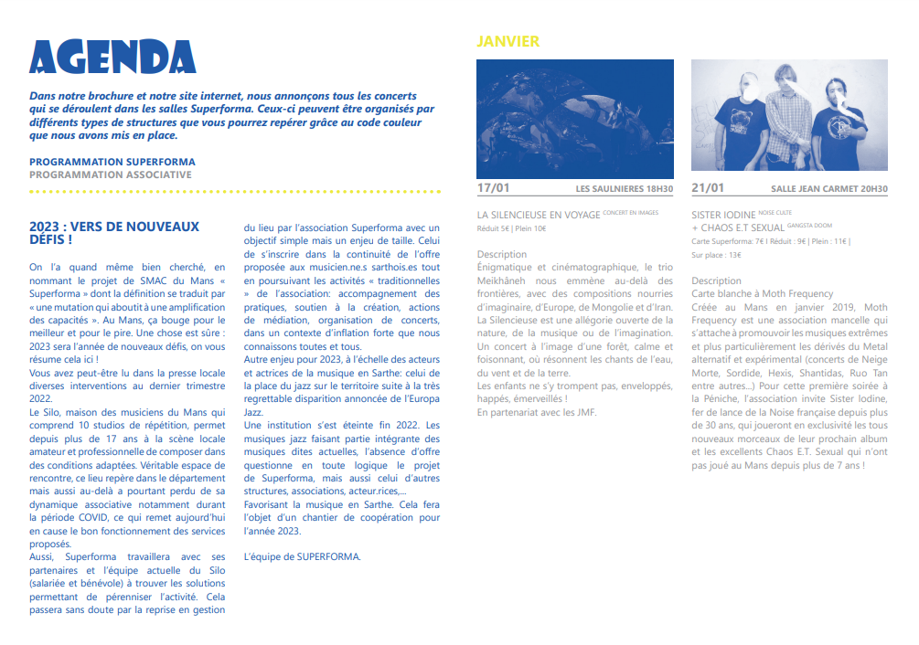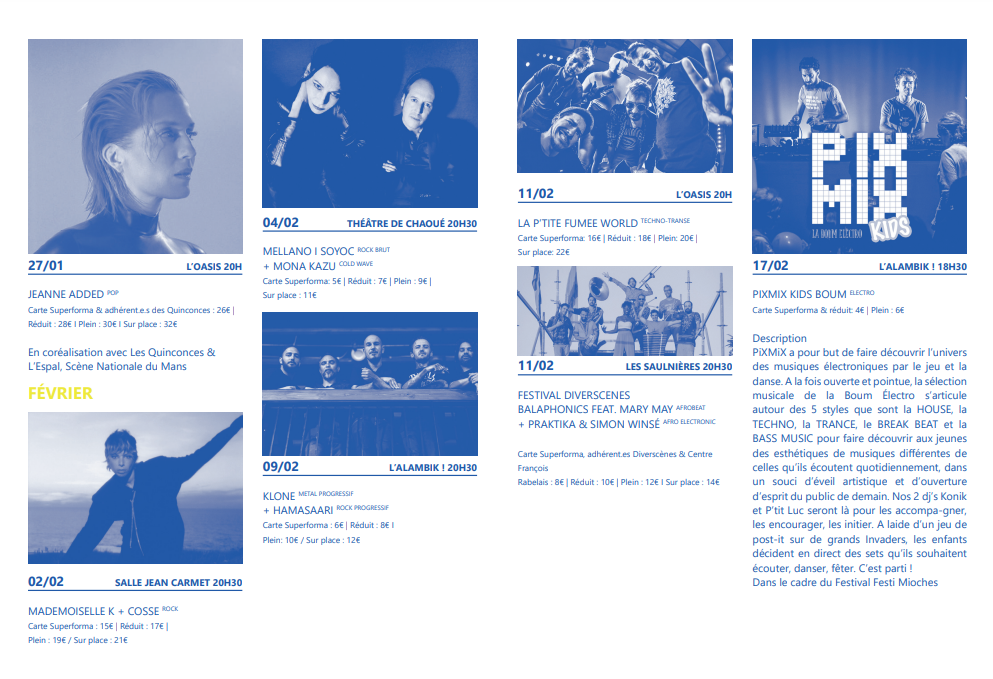 Dans l'un de nos cours de Master, il nous a été demandé de reproduire la brochure du programme de Superforma, une association du Mans ayant pour but la promotion des pratiques musicales et organisant des concerts.